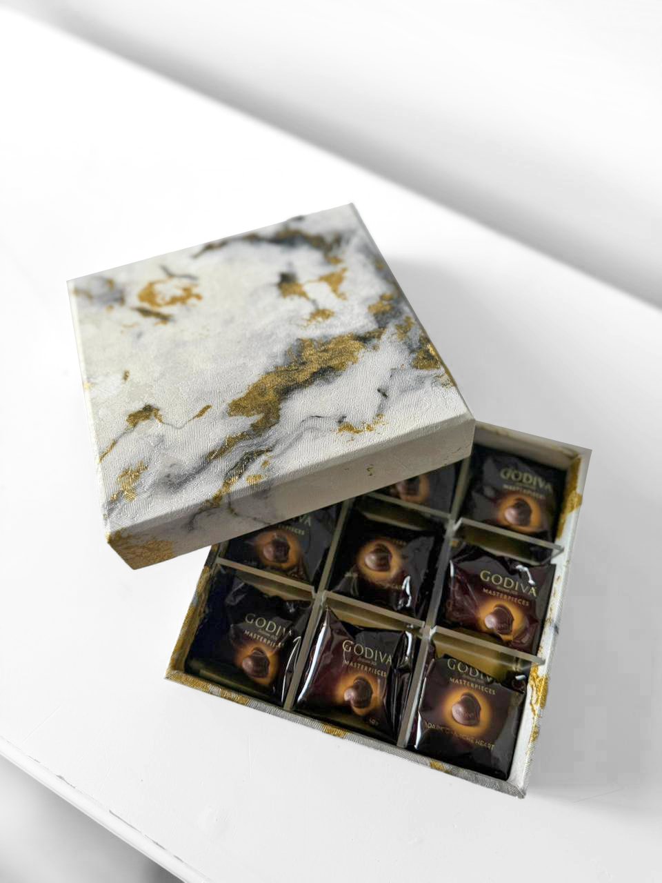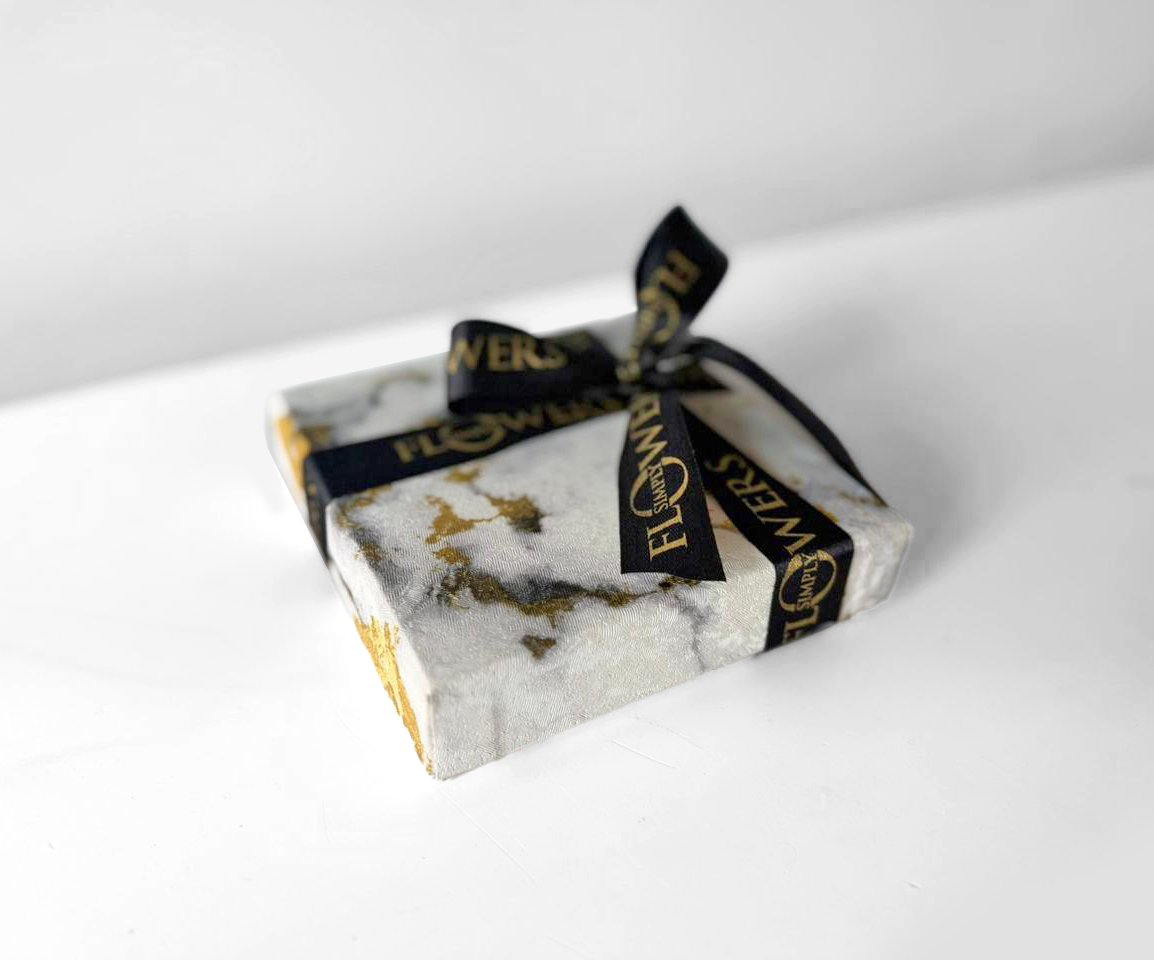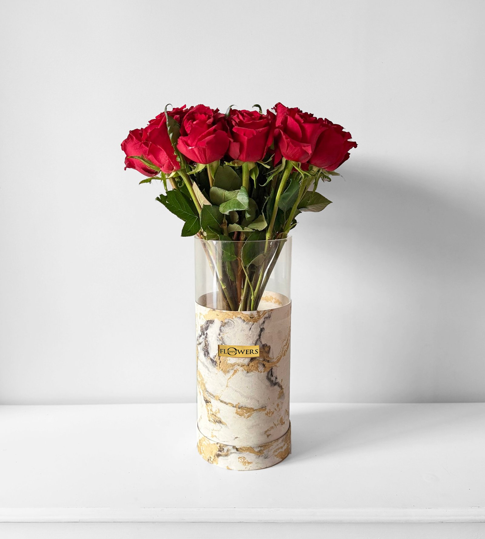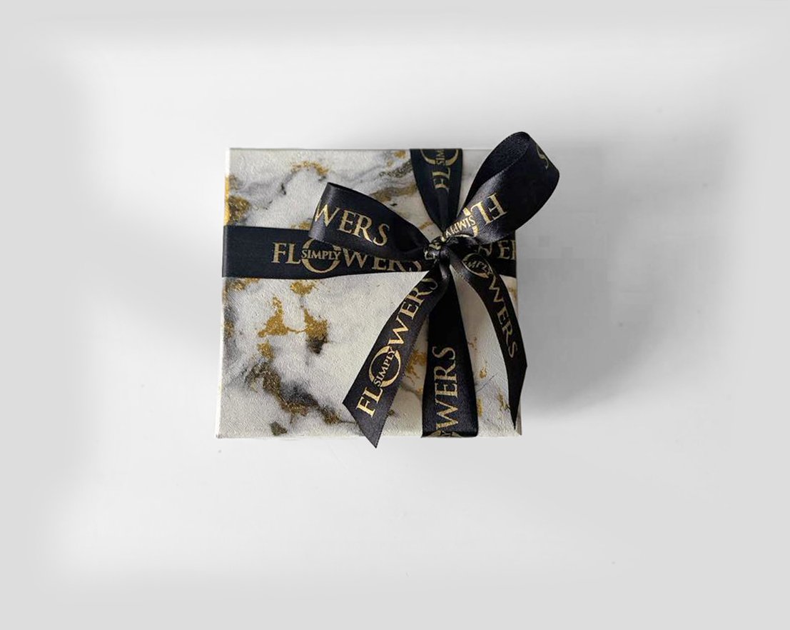 30 red roses in our signature marble print hat box with a complimentary balloon